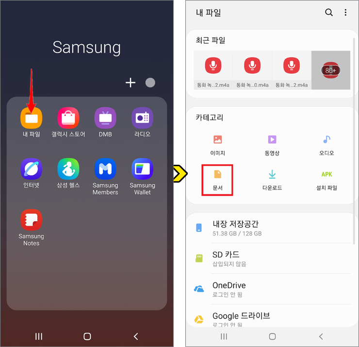 열린 내 파일 화면에서 카테고리 중 [문서]를 선택합니다.