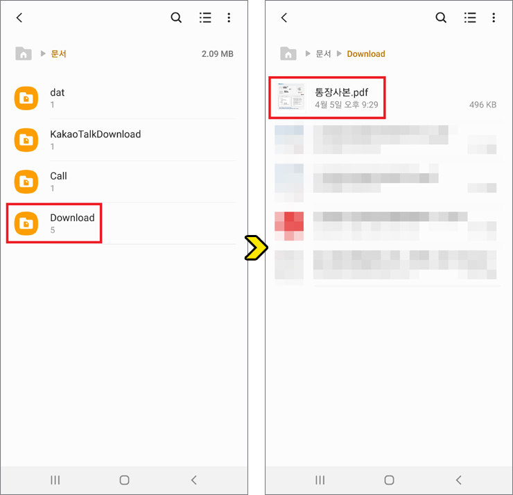 이어서 [Download]로 들어가면 통장사본 pdf 파일이 저장되어 있는 걸 볼 수 있을 거예요.