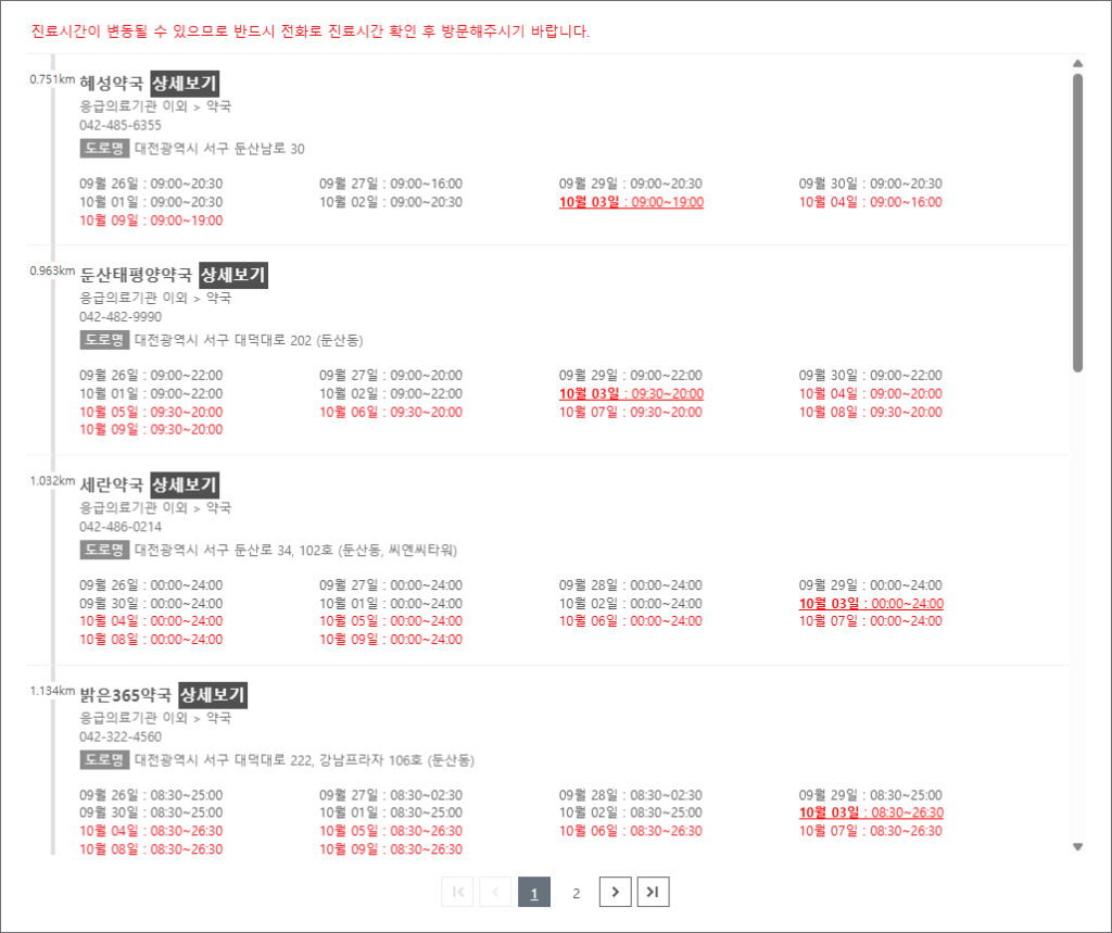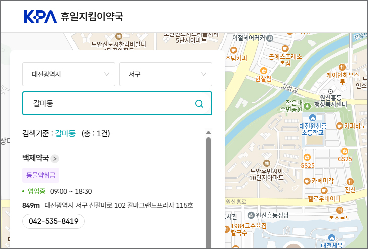대전지역의 당번약국 검색을 하면 약국 위치, 전화번호 등 자세한 정보를 쉽게 확인할 수 있는데요.