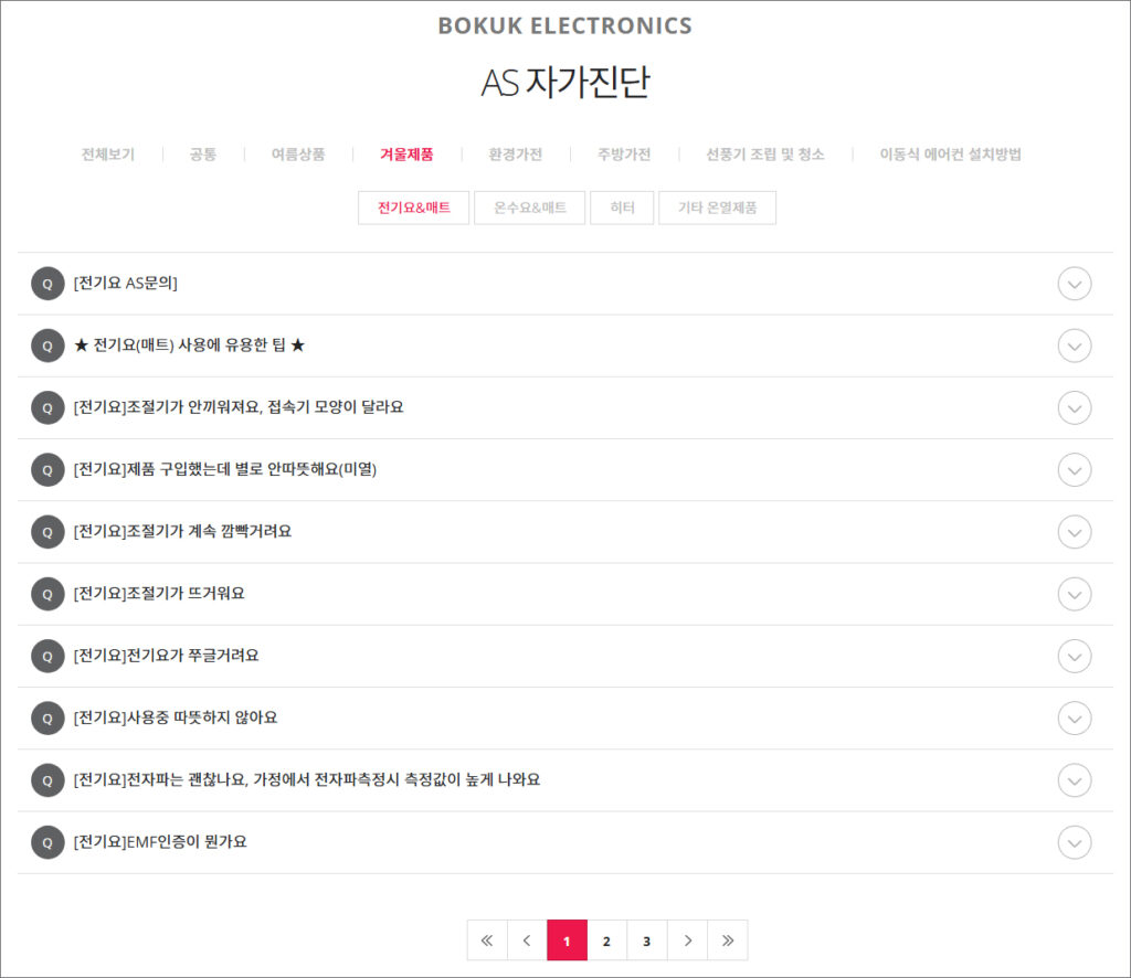 전기요/매트는 보국전자 본사로 대구에서 AS를 진행할 수 있는데 택배로 보내주셔야 접수 및 수리가 가능합니다.