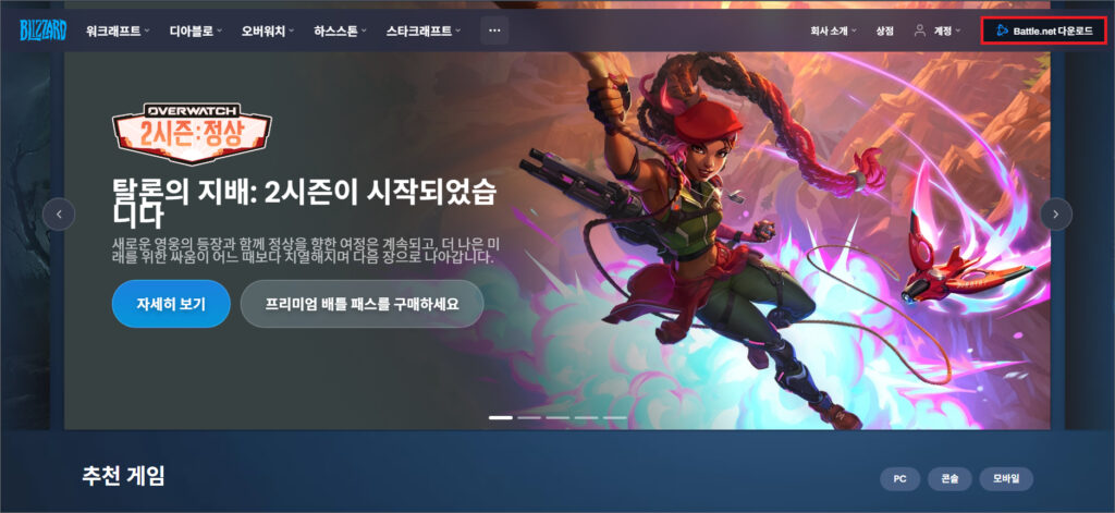 웹상에서 찾아보면 설치 파일을 배포하고 있는 곳을 쉽게 찾을 수 있지만 비공식 사이트로 검증되지 않은 곳에서 내려받을 경우 PC 문제가 생길 우려가 있으니 안전하게 베틀넷에서 다운로드하시는 게 좋은데요.