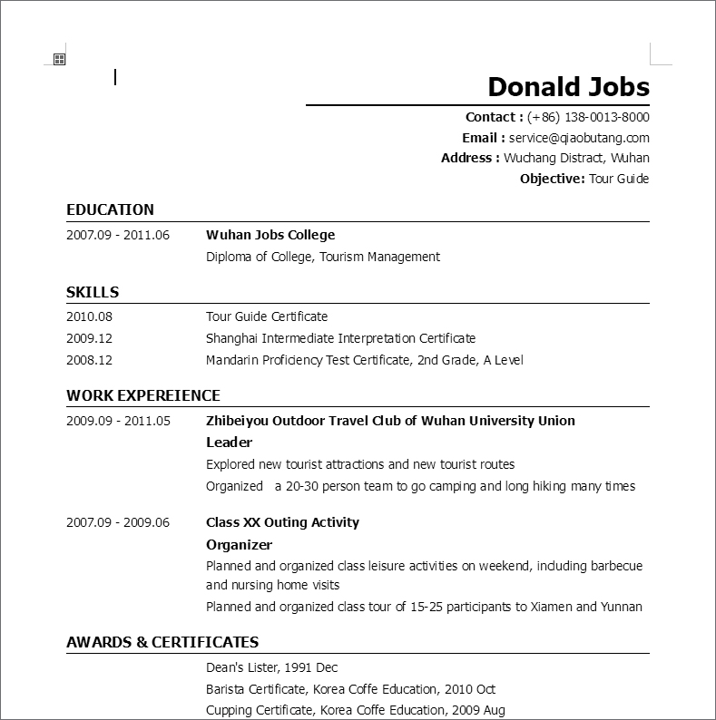 영문이력서는 규격화된 양식이 없고 자유로운 형식을 가지지만 그렇더라도 일반적인 이력서 구조와 예시를 충분히 알아본 후 작성하시는 게 좋은데요.