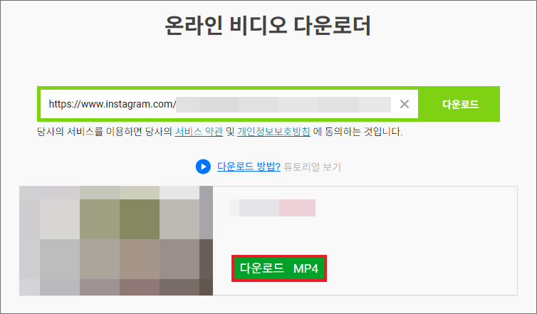 인스타 동영상 저장을 위해 [다운로드 MP4] 버튼을 누릅니다.