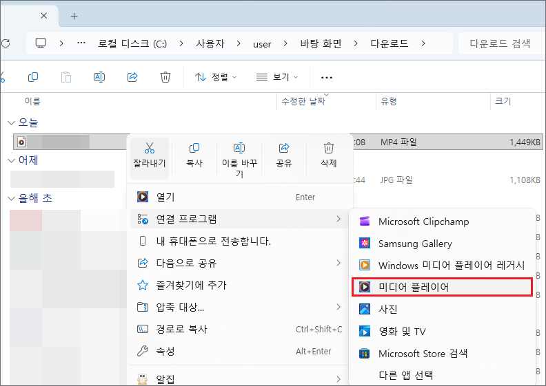해당 파일을 더블클릭하거나 우클릭해서 연결 프로그램으로 미디어 플레이어를 선택하면 영상이 재생될 테니 정상으로 잘 저장되었는지 확인해 보시면 될 겁니다.