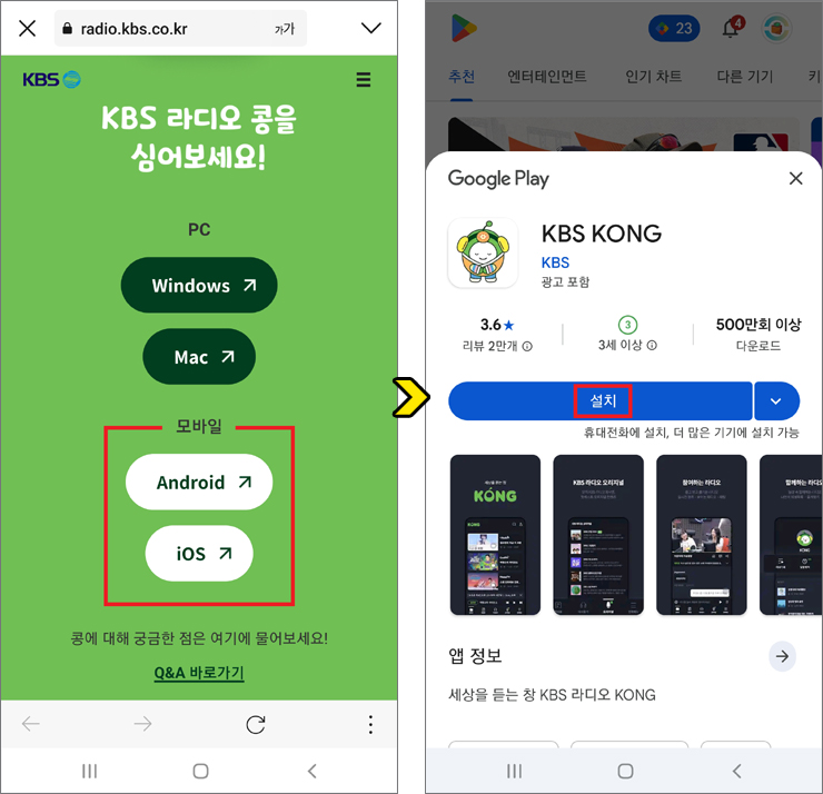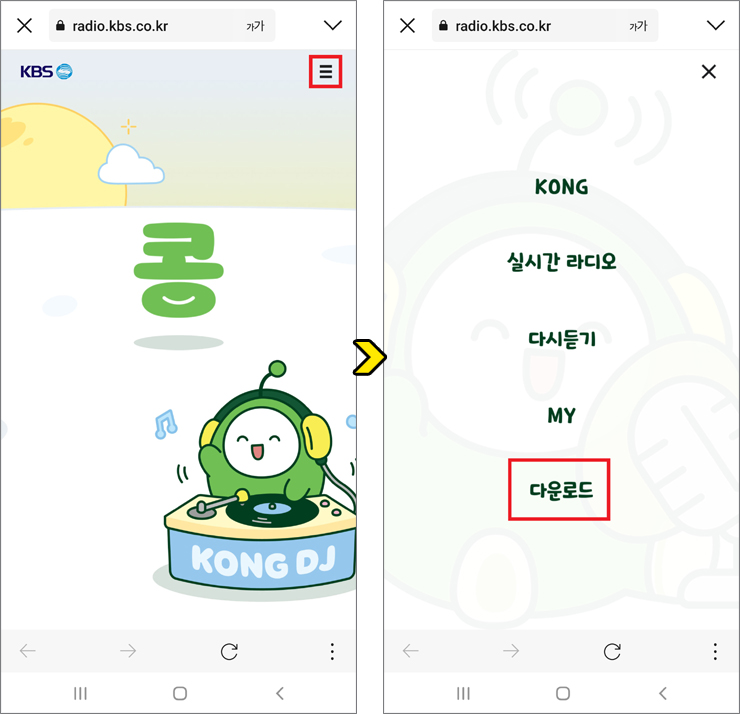 kbs 콩 다운로드, KBS KONG 라디오 앱 설치