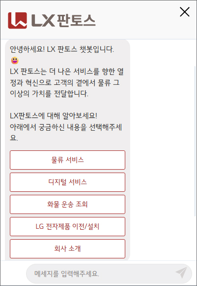 챗봇을 선택하면 작은 LX판토스 창이 뜨면서 LX판토스 챗봇을 이용할 수 있는데요.
