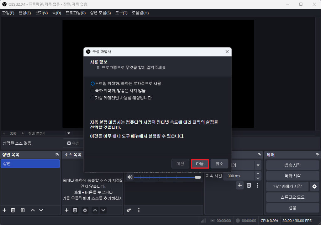 obs studio 다운로드 및 설치